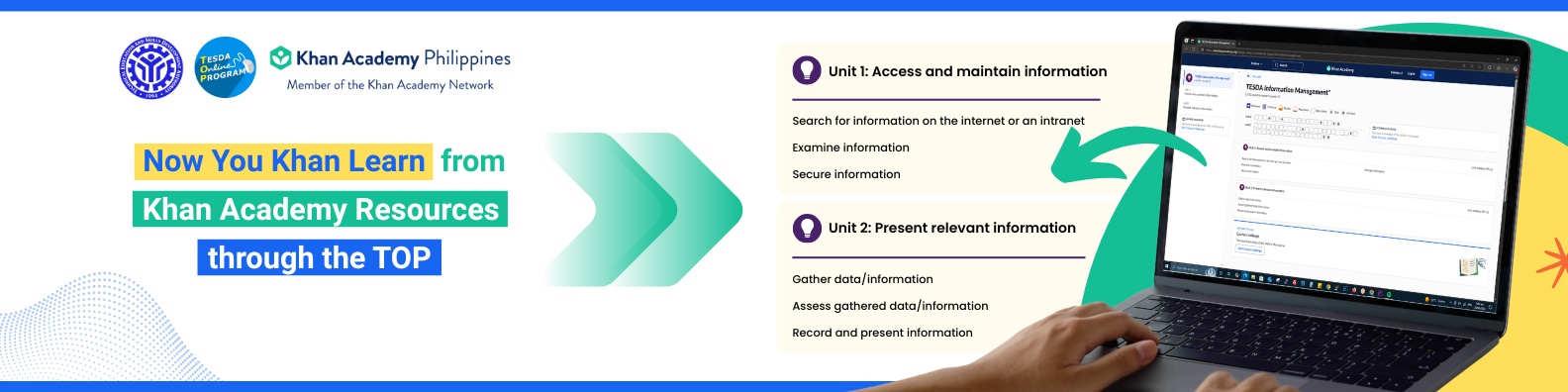 TESDA Online Program (TOP) is a web-based platform that offers free Massive Open Online Courses (MOOCs) for the technical education and skills development of the Filipino workers.